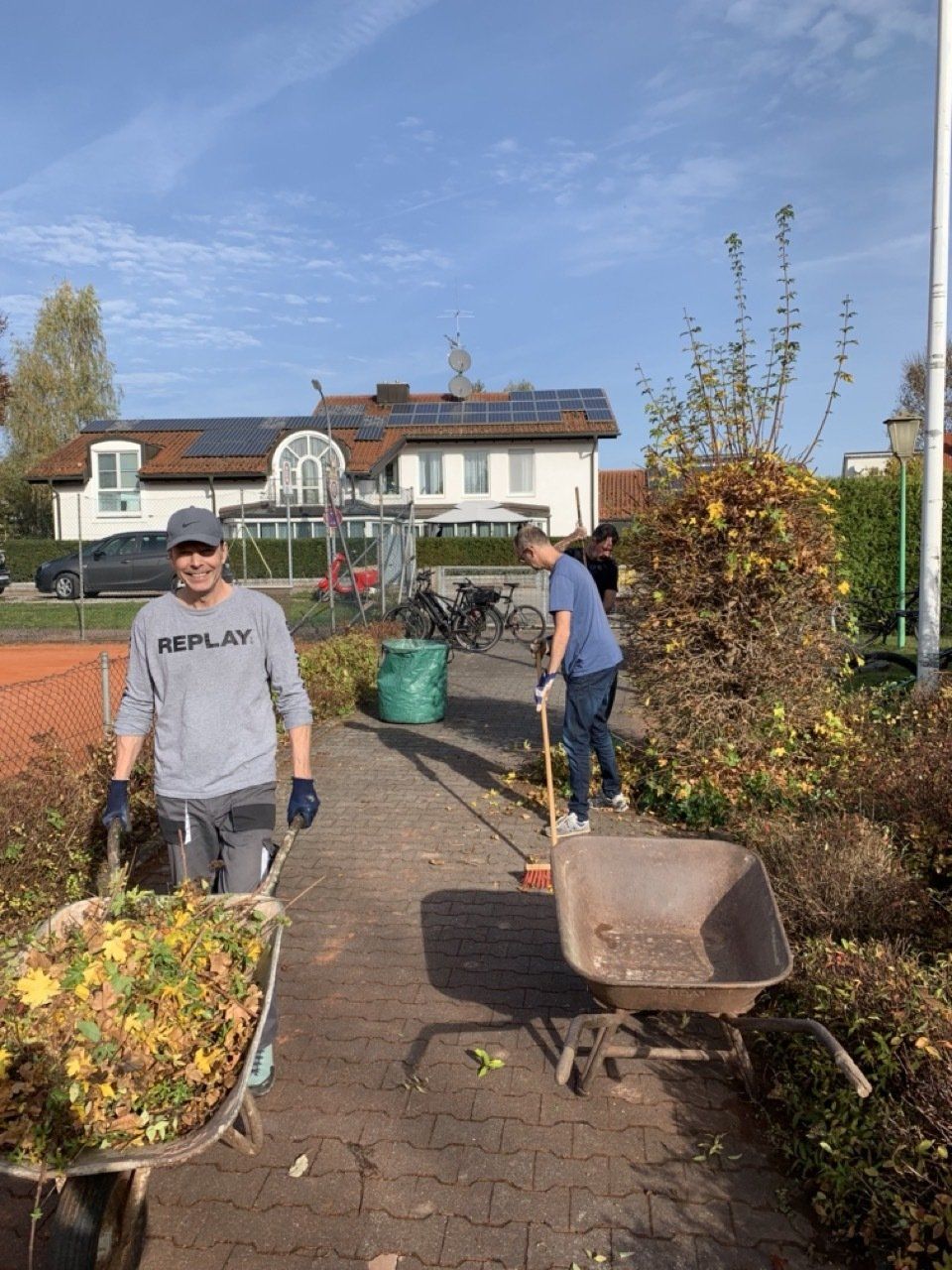 Ende Oktober: Höchste Zeit, unsere Tennisanlage für den Winter vorzubereiten. Am Samstag, den 30 Oktober haben wir mit vereinten Kräften Netze, Windschutzplanen, Pflegegeräte, Bänke, Banner, Fahnen und Mobiliar winterfest verstaut und die Anlage auf den Winterschlaf vorbereitet. Außerdem haben wir die Plätze von Laub und Unkraut befreit. Diejenigen von Euch, die die letzten warmen Herbsttage noch nutzen wollen, können auf Platz 1 und 2 weiterhin spielen. Wir lassen die Netze noch bis zum ersten Frost hängen. Bitte entfernt vor dem Spielen das Laub von den Plätzen. Auch das Clubhaus sowie die Toiletten sind weiterhin wie gewohnt geöffnet. Aber bitte hinterlasst keinen Müll mehr. Den Mithelfern (auch denen, die nicht auf dem Foto zu sehen sind) herzlichen Dank fürs tolle Engagement!