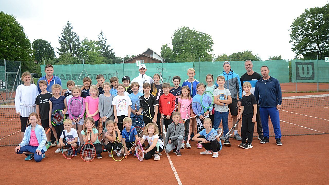 Ein zwanzigköpfiges Starterfeld & traumhaftes Spätsommerwetter waren die idealen Rahmenbedingungen für den 2020er Bambini-Cup auf unsere Anlage einen Tag nach der Clubmeisterschaft. Neben elf eigenen Teilnehmern hatten wir neun Bambinis aus Utting zu Gast bei unserem Jahresabschlussturnier. Gespielt wurde in vier Fünfer-Gruppen, die in der Vorrunde jede/r gegen jede/n einen Match-Tiebreak absolvierten. Vier Matches pro Teilnehmer waren also für jede/n Starter/in zu spielen. Dabei kam es zu spannenden Begegnungen, wobei unsere Kids zeigten, wie stark sie sich in der laufenden Saison verbessert haben. Dennoch hatten, wie auch schon beim Punktspiel, die Uttinger Kids die Nasen vorn und folglich qualifizierten sich für die Halbfinal-Begegnungen mit Antonia, Alex, Florentin und Maxi gleich vier Youngsters aus Utting. Nach einer Pause mit Stärkung vom Grill (vielen Dank an unser Grillteam!) wurden die Halbfinale als Satz bis vier/No Ad gespielt und die Halbfinalisten schenkten sich wahrlich nichts. Es wurde um jeden Ball gekämpft, bis sich mit Antonia und Alex durch jeweils knappe Siege die Finalisten präsentierten. Im Finale zeigte sich Alex als nervenstark und fand immer wieder eine passende Antwort auf die langen und präzisen Grundlinienschläge, mit der Antonia sich zurecht in die Endrunde gespielt hatte. Nach einem spannenden Match hieß es dann Spiel, Satz und Sieg für Alex. Das Spiel um Platz drei konnte Florentin nach ebenfalls nervenaufreibendem Spielverlauf gegen den viertplatzierten Maxi für sich entscheiden.
